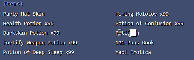 You gave "me" a normal potion on 09/09, right? When I logged on, I found the potion in my inventory, glitched.